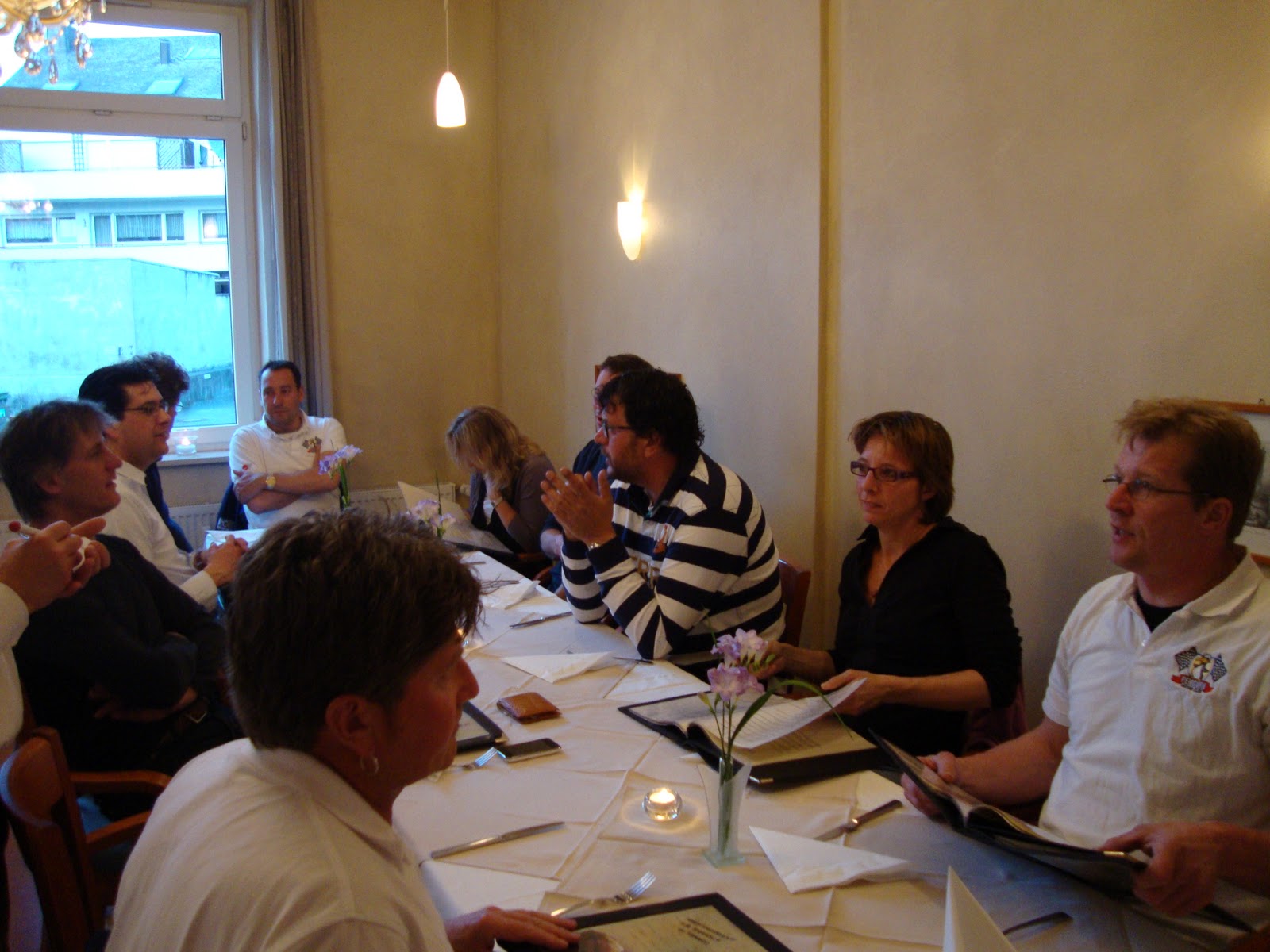 Herr Polizist wil alledrie bekeuren en rijd met de 1e aangehoudene mee naar het hotel waarna groep-b, zich onbewust van wat er is gebeurt ook arriveert en kan meegenieten van de beelden op de video. Als ook de 'ontkomenen' uiteindelijk hier arriveren, kan het uitschrijven van de bekeuringen aanvangen. Hij zoekt alleen de 3 man die op de film staan, dus voor 2 van ons is het een gelukkige-dag. Het pakt zo uit dat de 'stille' een geschikte vent blijkt te zijn die er niet op uit is ons voor alle overtredingen te bekeuren en hij komt uit op 30 kilometer te snel wat in Duitsland neerkomt op 80 euro waar nog 20 euro administratie kosten bijkomt............. In Nederland had dit beslist anders afgelopen! En zoals dat gaat krijgen de 3 delinquenten ook ineens allemaal weer praatjes en zal dit voorval aanleiding zijn voor nog heel wat mooie verhalen in de toekomst.