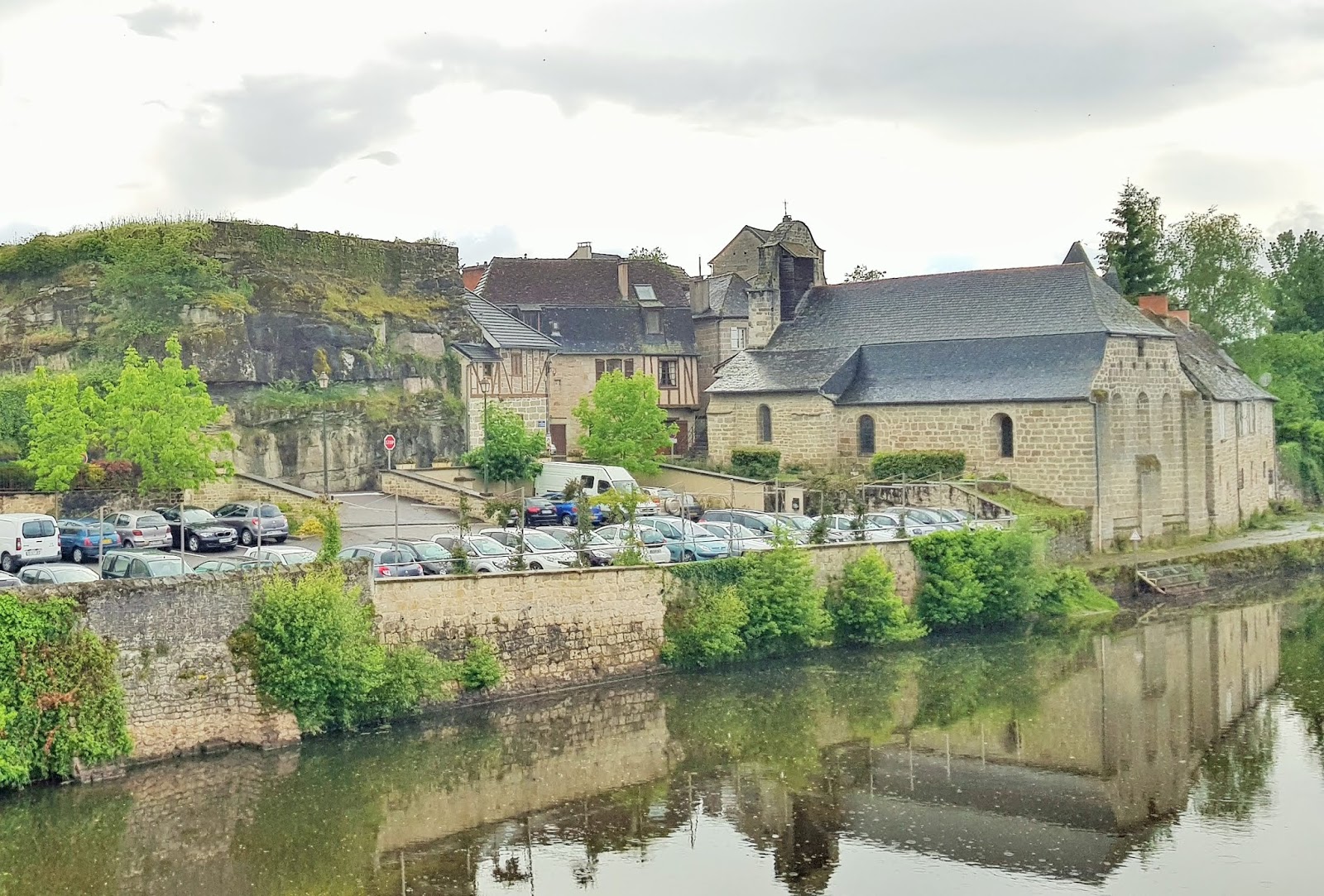 Nou leuk om te zien hoor, maar geen tijd om echt te bezoeken dus rijden we via een voetgangersbrug (!) voor de poorten, maken foto en gaan in de achtervolging op de groep. Binnendoor word het als de Pyreneeën naderen mooier en mooier, maar ook natter.
